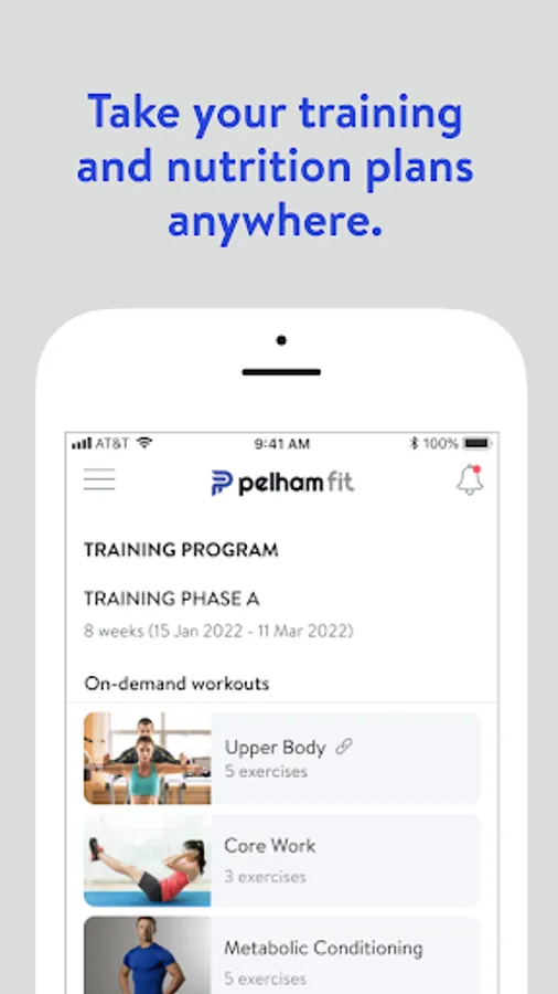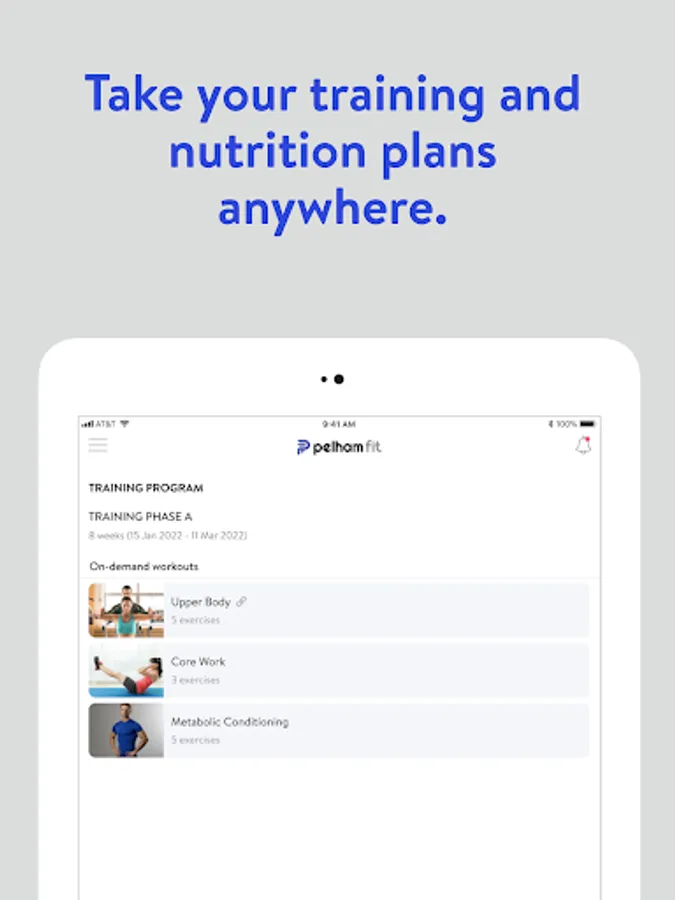 With the Pelham Fit App, you can start tracking your workouts and meals, measuring results, and achieving your fitness goals, all with the help of your personal trainer.