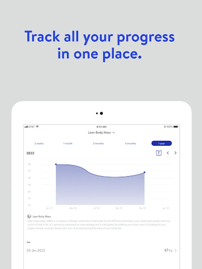 - Connect to wearable devices like Apple Watch (synced to Health app), Fitbit and Withings to sync body stats instantly