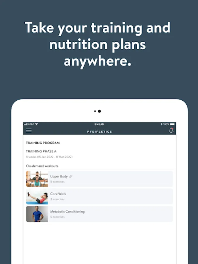 With Pfeifletics, you will have access to workout programs designed specifically to help you reach your fitness and health goals! You can follow & track your workouts, your nutrition, your lifestyle habits, measurements and results–all with the help of your coach.