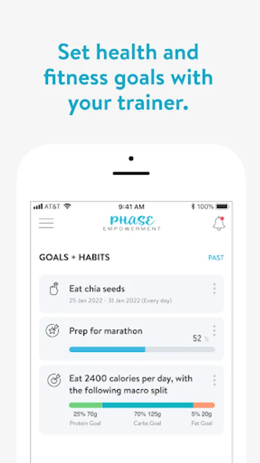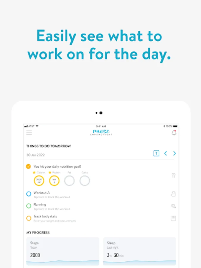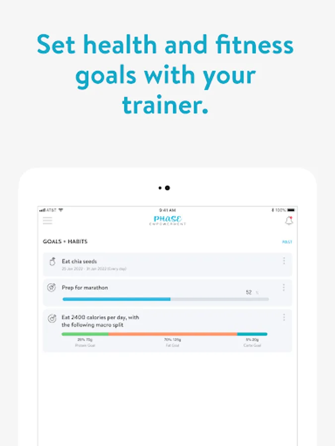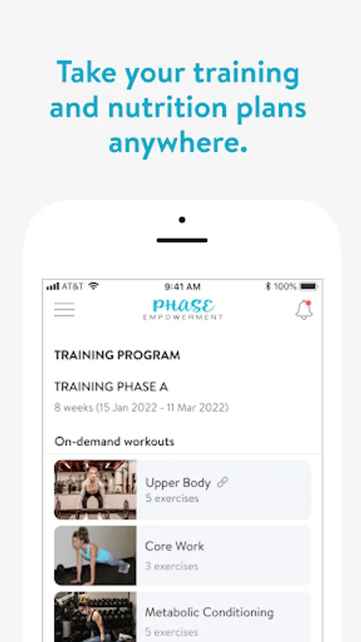 With the PHASEmpowerment App, you will have access to workout programs designed specifically to help you reach your fitness and health goals! You can follow & track your workouts, your nutrition, your lifestyle habits, measurements and results–all with the help of your coach.