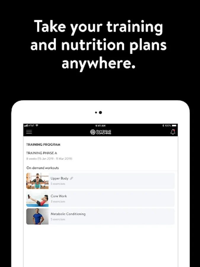 With Phyzique Coaching app you will have access to custom 1-on-1 online coaching programs designed specifically to help you reach your fitness and health goals! You can follow & track your workouts, your nutrition, your lifestyle habits, measurements and results–all with the help of your coach.