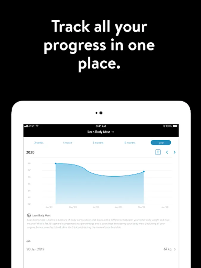 - Connect to other wearable devices and apps like the Apple Health App, Garmin, Fitbit, MyFitnessPal, and Withings devices to track workouts, sleep, nutrition, and body stats and composition
