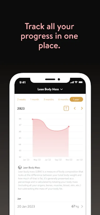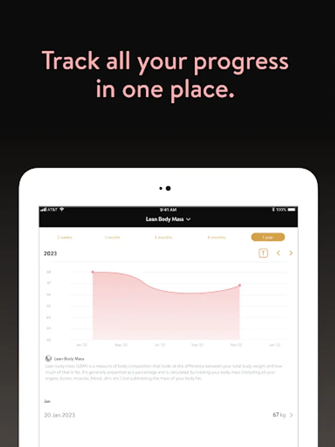 - Track body measurements and take progress photos