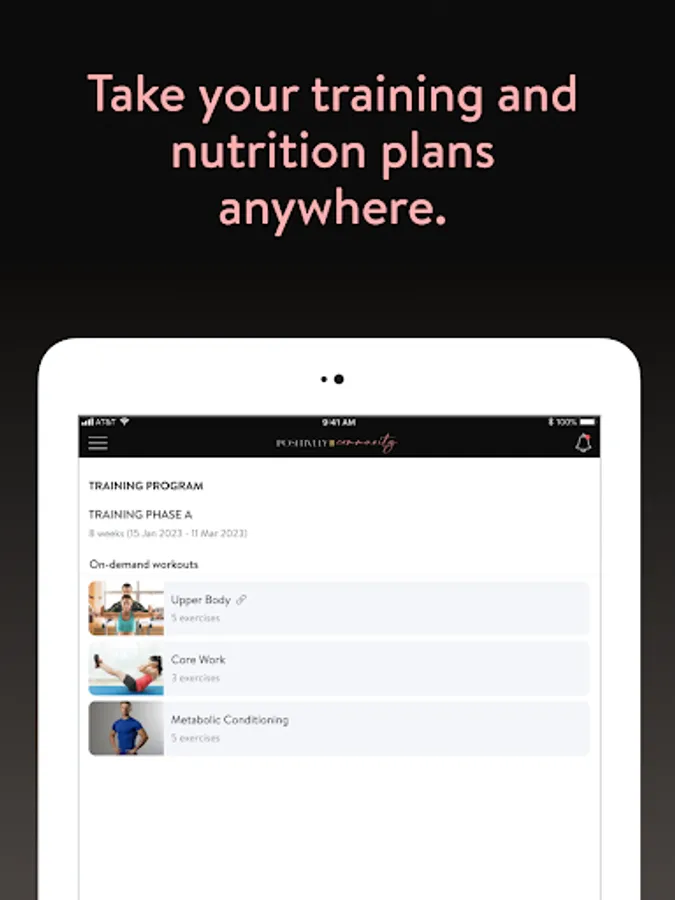 With the PFC App, you will have access to workout programs designed specifically to help you reach your fitness and health goals! You can follow & track your workouts, your nutrition, your lifestyle habits, measurements and results–all with the help of your coach.