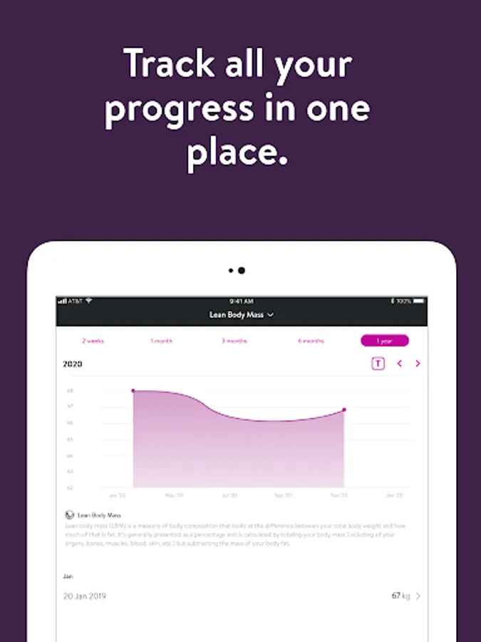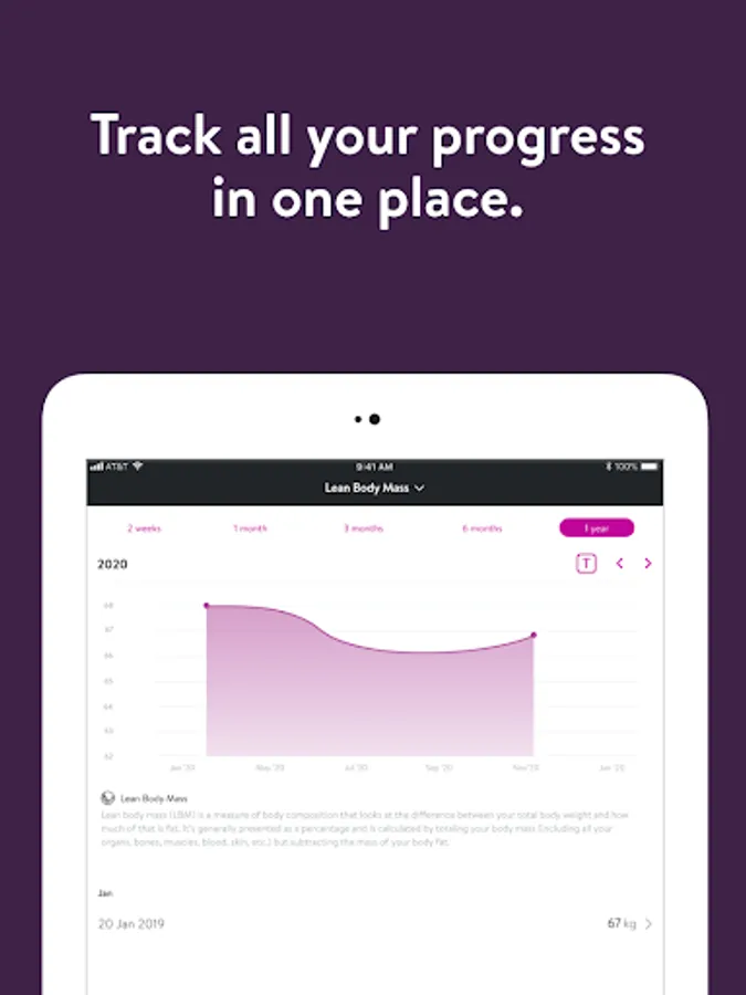 - Connect to wearable devices like Apple Watch (synced to Health app), Fitbit and Withings to sync body stats instantly