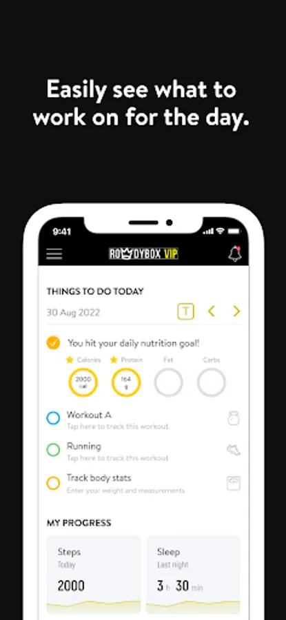 With the RowdyBox VIP App, you will have access to additional nutrition, coaching, and workout programs designed specifically to help you reach your fitness and health goals! You can follow & track your progress, your nutrition, your lifestyle habits, workouts and results–all with the help of your coach.
