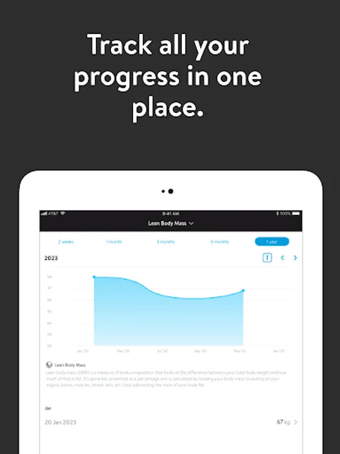 - Connect to other wearable devices and apps like the Apple Health App, Garmin, Fitbit, MyFitnessPal, and Withings devices to track workouts, sleep, nutrition, and body stats and composition