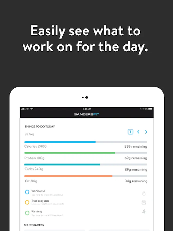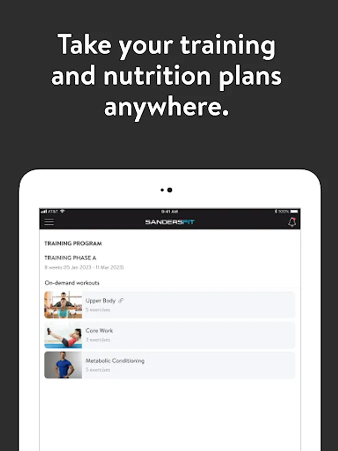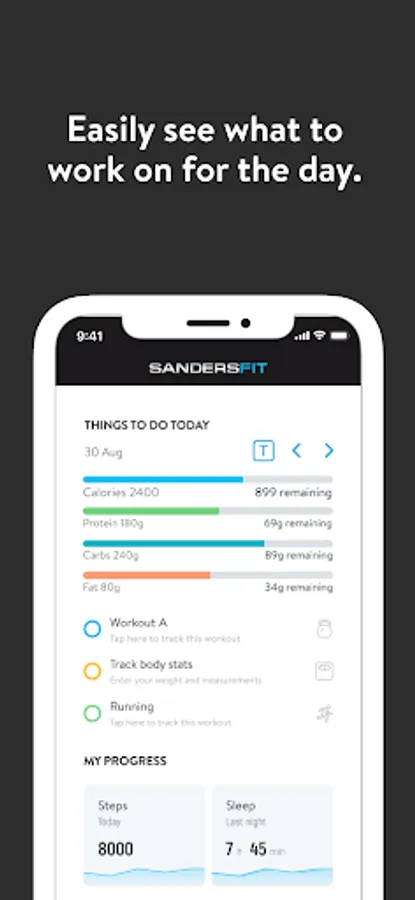 With the SandersFit App, you will have access to workout programs designed specifically to help you reach your fitness and health goals! You can follow & track your workouts, your nutrition, your lifestyle habits, measurements and results–all with the help of your coach.