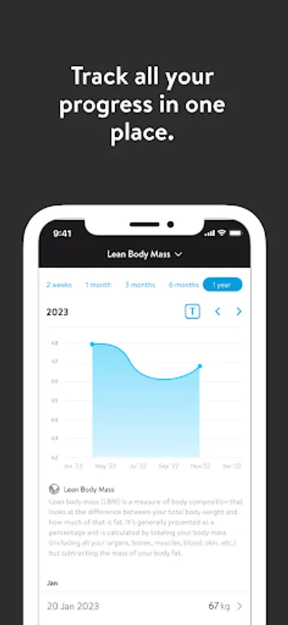 - Track body measurements and take progress photos
