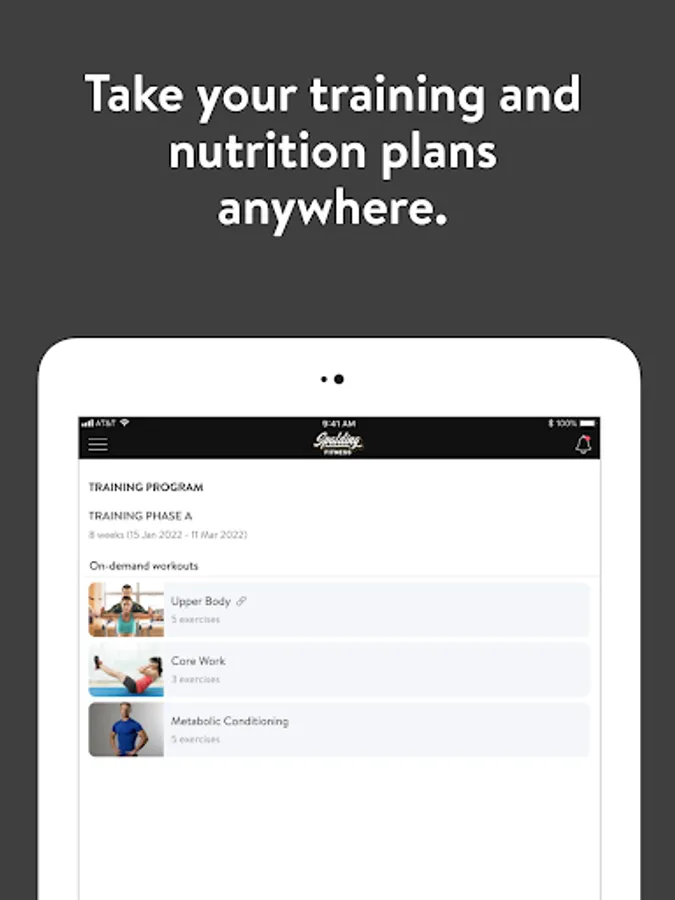 With the Spalding Fitness App, you will have access to workout programs designed specifically to help you reach your fitness and health goals! You can follow & track your workouts, your nutrition, your lifestyle habits, measurements and results–all with the help of your coach.