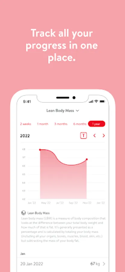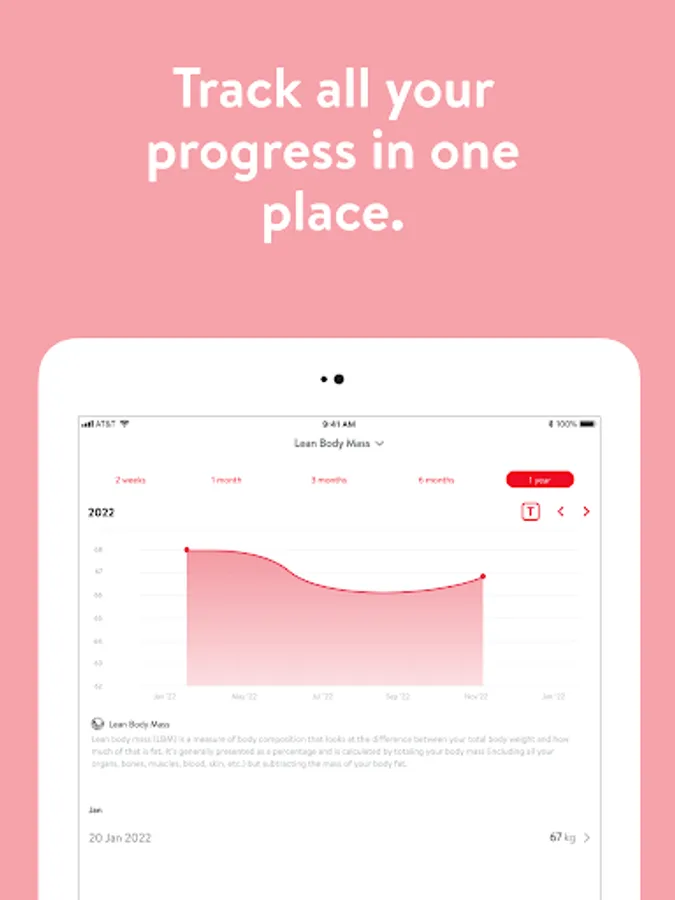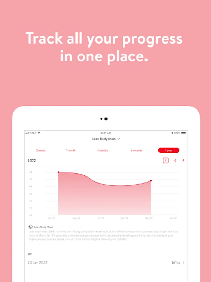 - Track body measurements and take progress photos