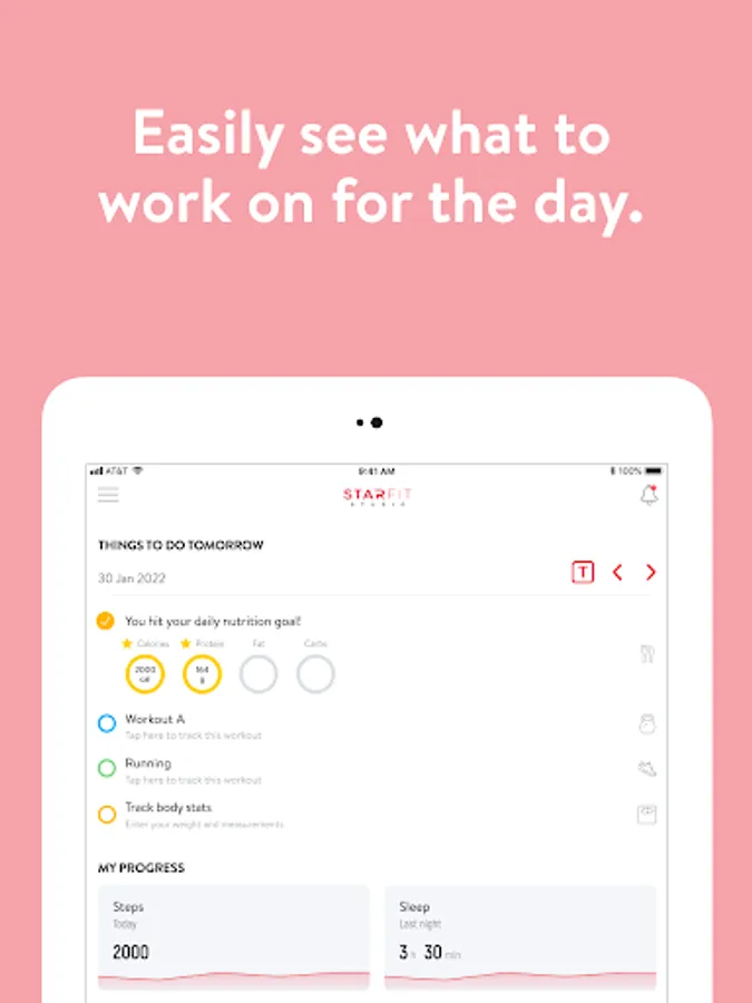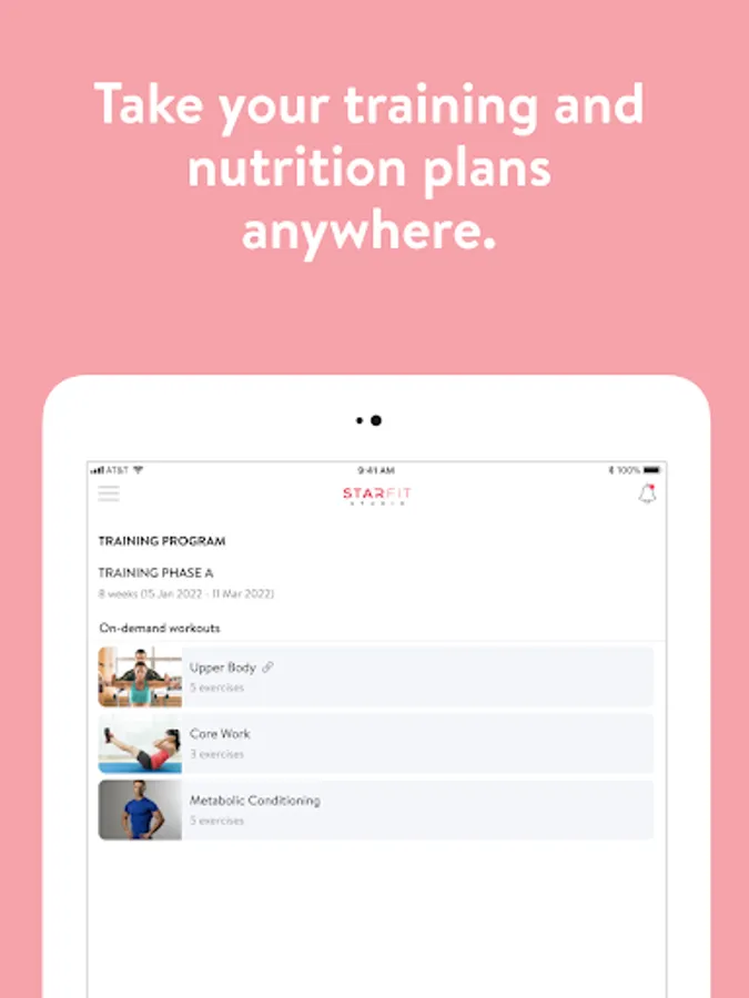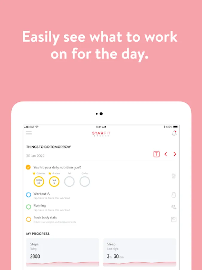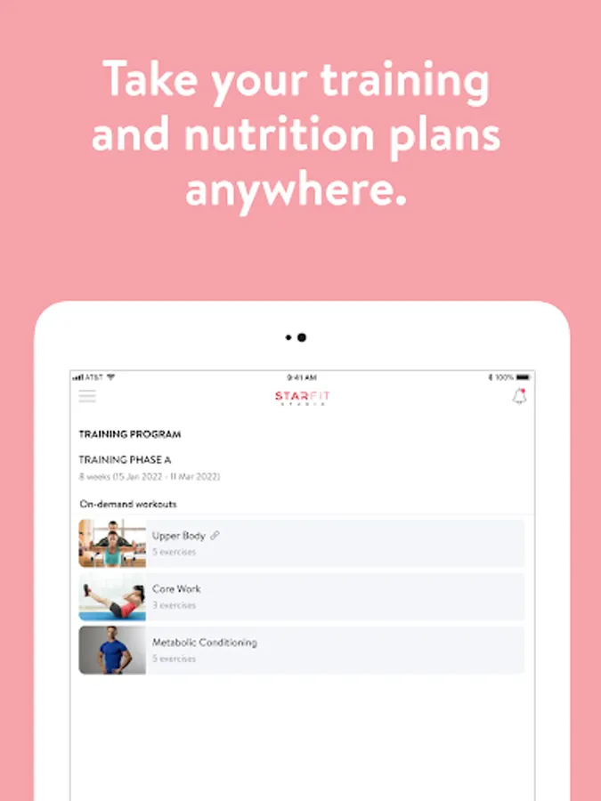 With the StarFit VIP App, you will have access to workout programs designed specifically to help you reach your fitness and health goals! You can follow & track your workouts, your nutrition, your lifestyle habits, measurements and results–all with the help of your coach.
