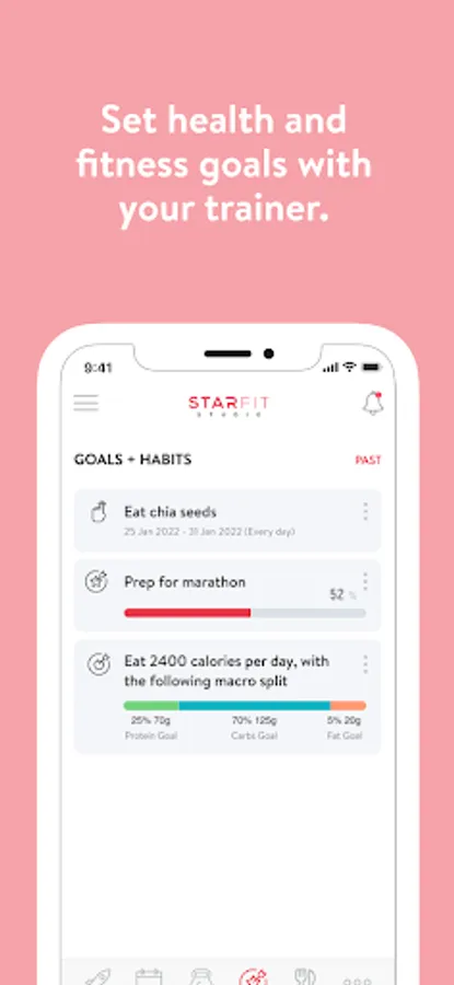 - Set health and fitness goals and track progress towards your goals