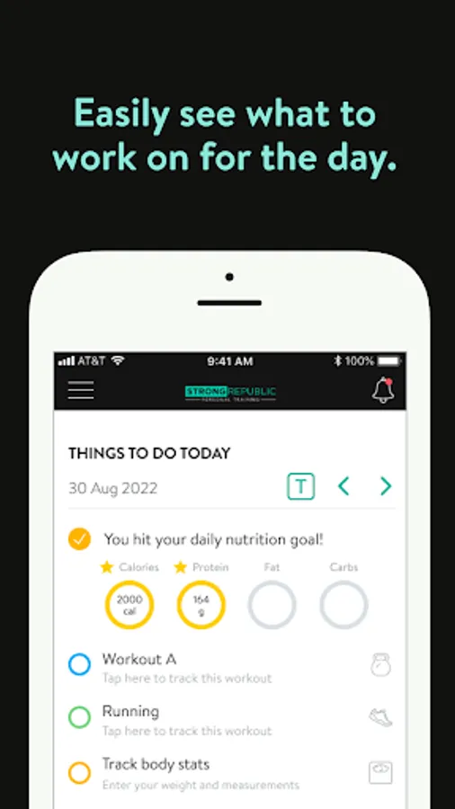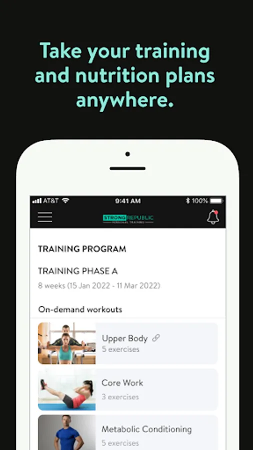 With the Strong Republic Personal Training App, you will have access to workout programs designed specifically to help you reach your fitness and health goals! You can follow & track your workouts, your nutrition, your lifestyle habits, measurements and results–all with the help of your coach.