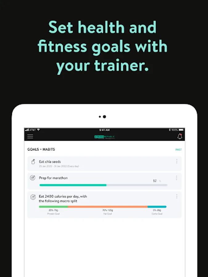 - Set health and fitness goals and track progress towards your goals