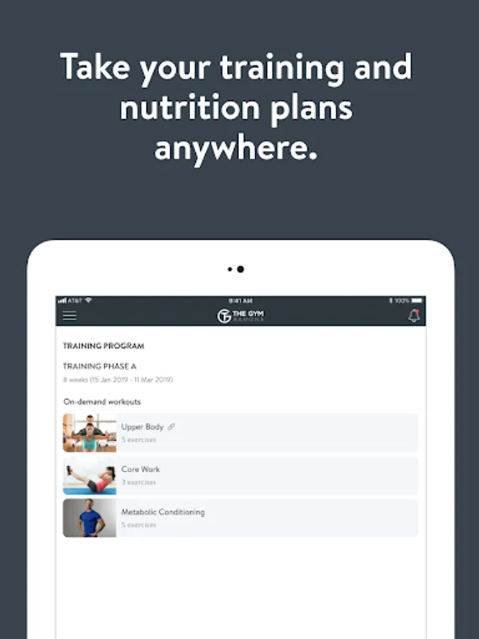 With the The Gym Ramona App, you can start tracking your workouts and meals, measuring results, and achieving your fitness goals, all with the help of your personal trainer.