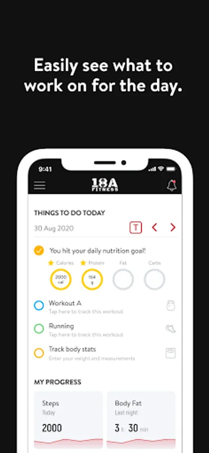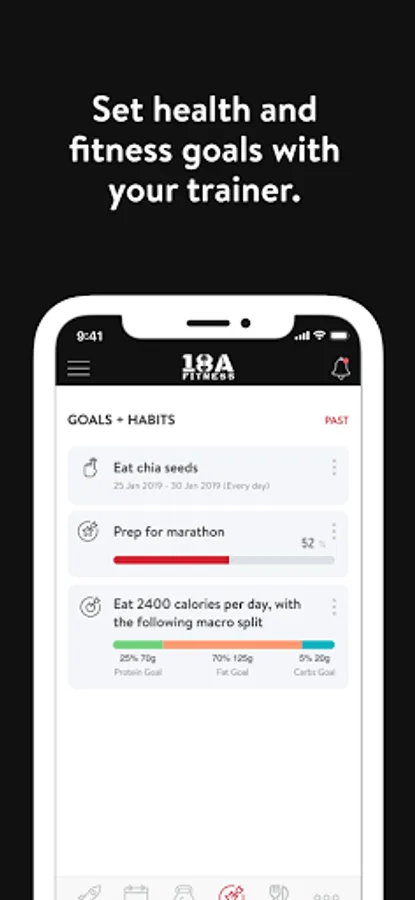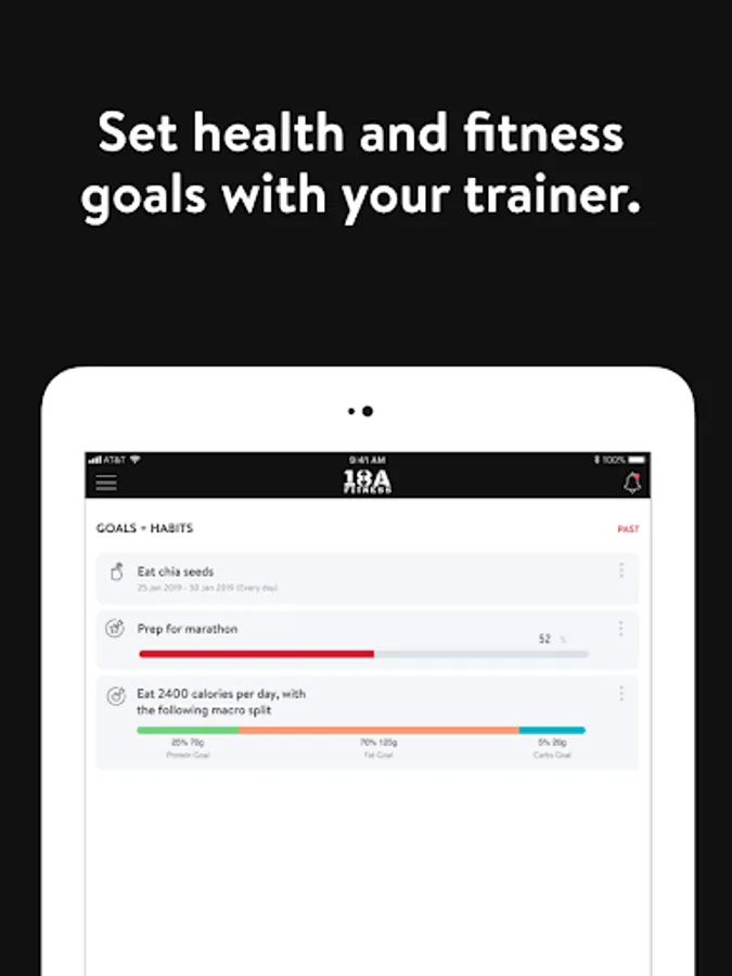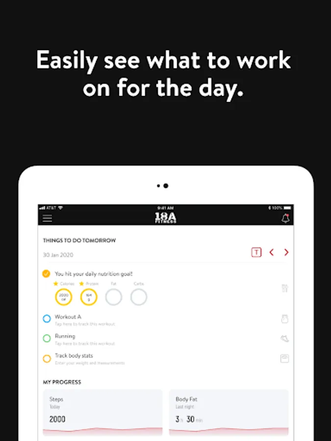 With the 18A Fitness App, you can start tracking your workouts and meals, measuring results, and achieving your fitness goals, all with the help of your personal trainer.