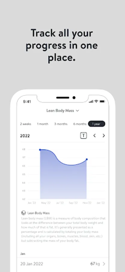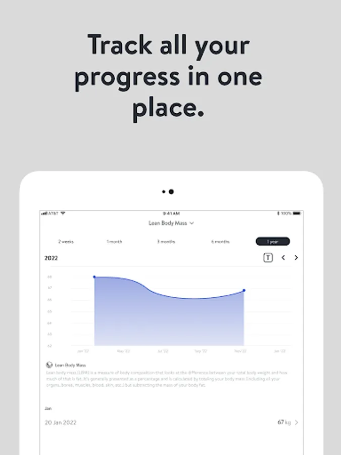 - Track body measurements and take progress photos