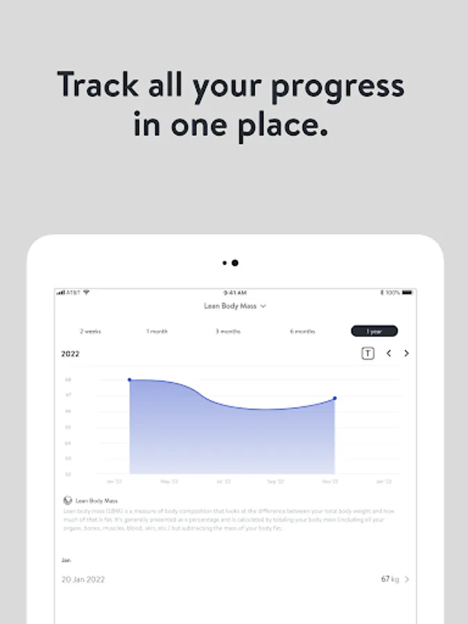 - Connect to other wearable devices and apps like the Apple Health App, Garmin, Fitbit, MyFitnessPal, and Withings devices to track workouts, sleep, nutrition, and body stats and composition