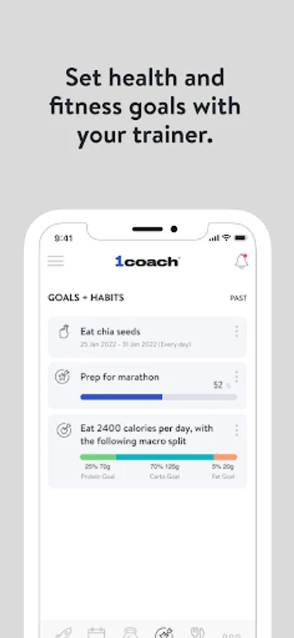 - Set health and fitness goals and track progress towards your goals