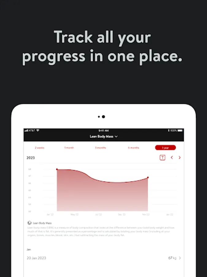 - Connect to other wearable devices and apps like the Apple Health App, Garmin, Fitbit, MyFitnessPal, and Withings devices to track workouts, sleep, nutrition, and body stats and composition