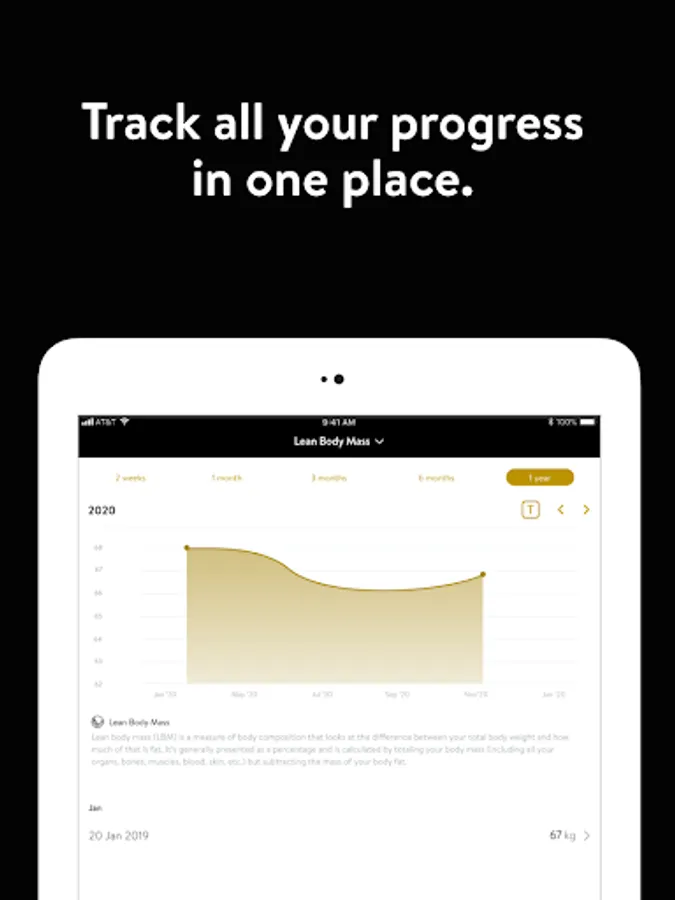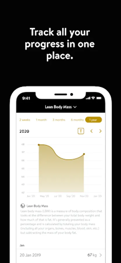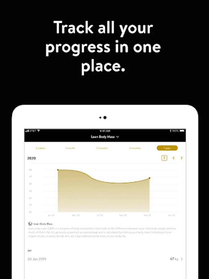-We love to see progress. Track all your workout data, body measurements, and progress photos(a key requirement for success in any goal.)