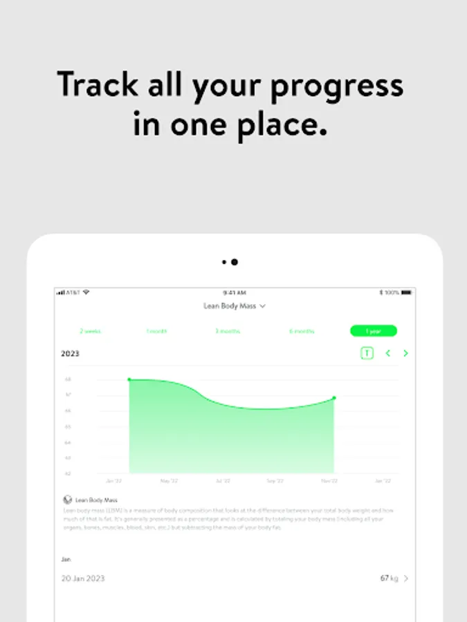 - Connect to other wearable devices and apps like the Apple Health App, Garmin, Fitbit, MyFitnessPal, and Withings devices to track workouts, sleep, nutrition, and body stats and composition