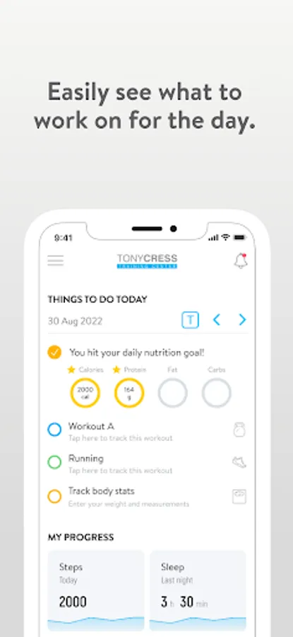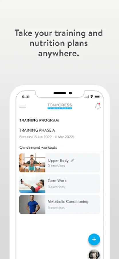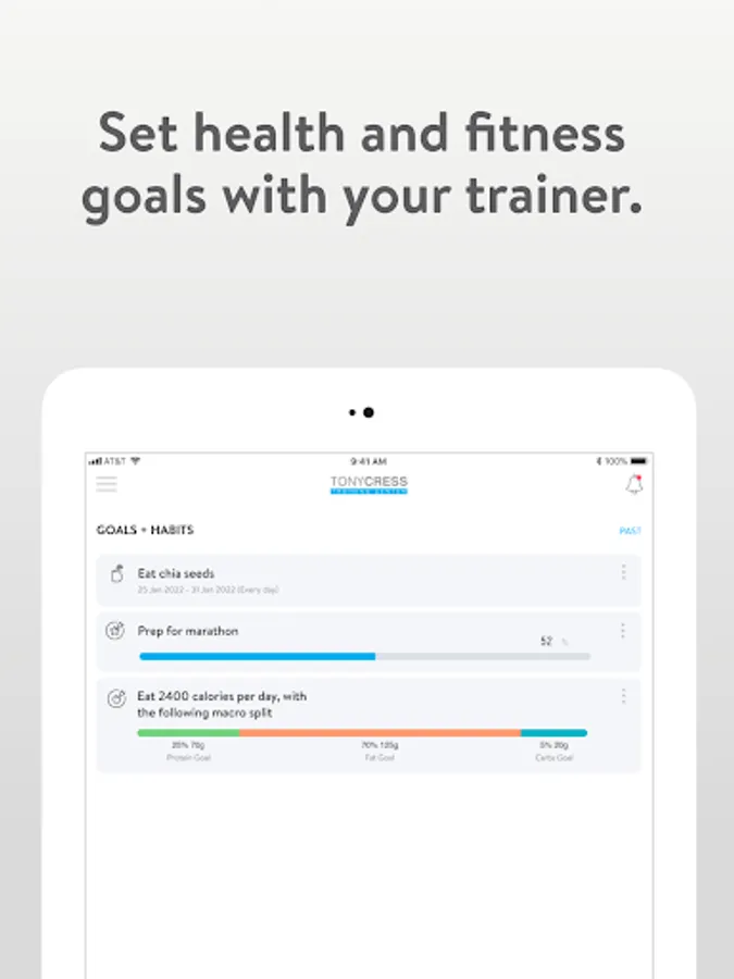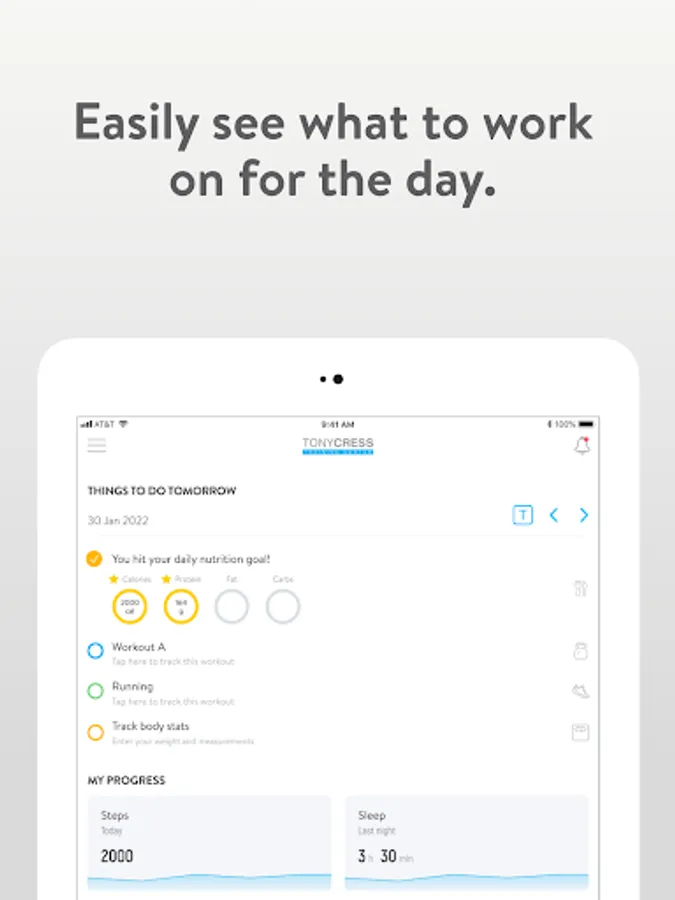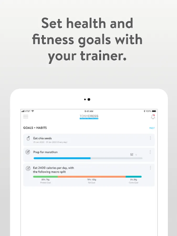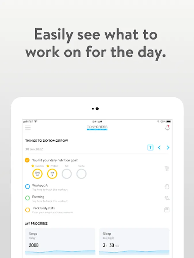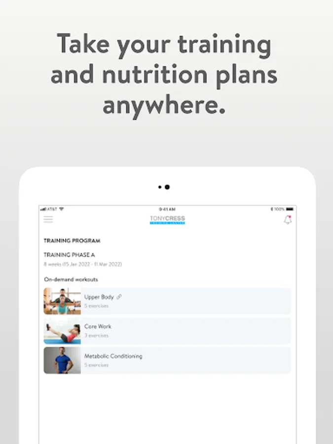 With the Tony Cress 360 Health App, you will have access to workout programs designed specifically to help you reach your fitness and health goals! You can follow & track your workouts, your nutrition, your lifestyle habits, measurements and results–all with the help of your coach.