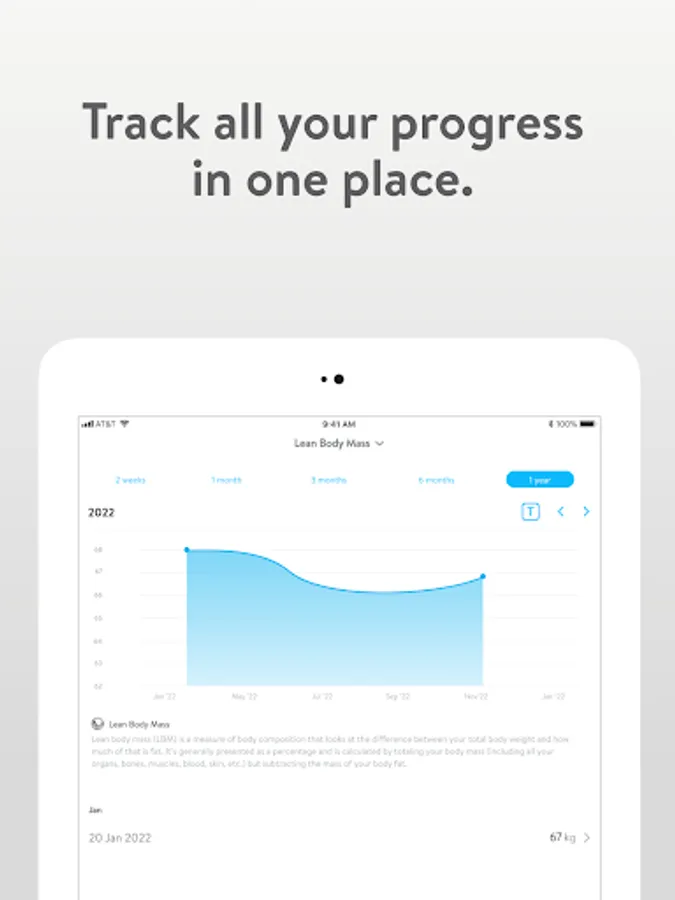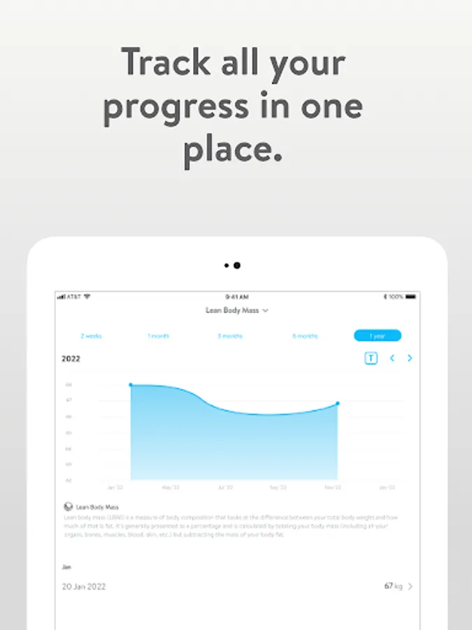 - Connect to other wearable devices and apps like the Apple Health App, Garmin, Fitbit, MyFitnessPal, and Withings devices to track workouts, sleep, nutrition, and body stats and composition
