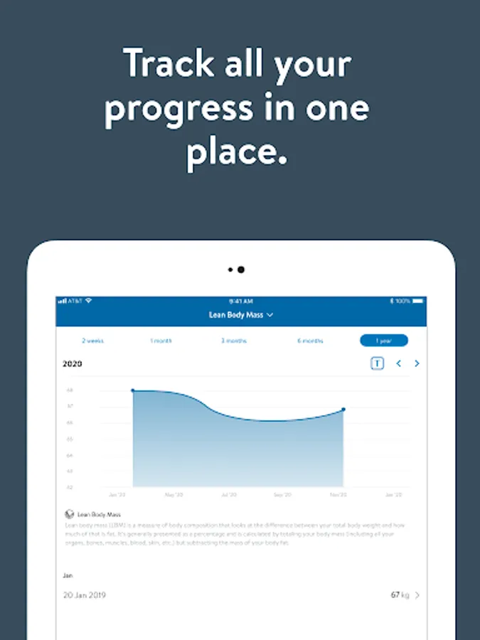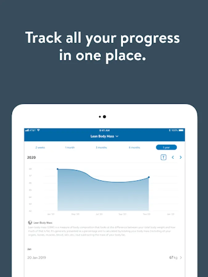 - Connect to wearable devices like Apple Watch (synced to Health app), Fitbit and Withings to sync body stats instantly