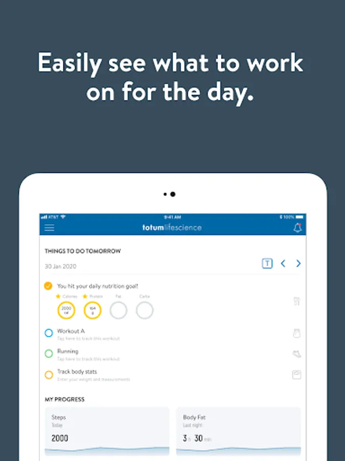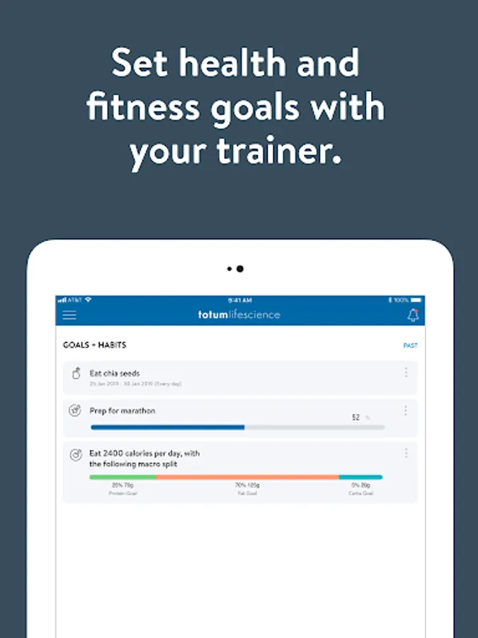 With the Totum App, you can start tracking your workouts and meals, measuring results, and achieving your fitness goals, all with the help of your personal trainer.