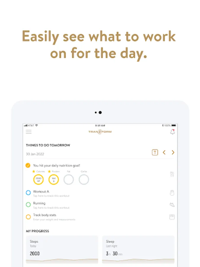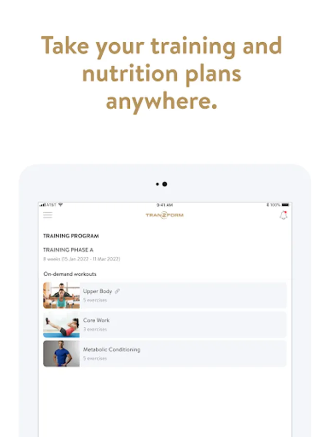 With the Tranzform App, you will have access to workout programs designed specifically to help you reach your fitness and health goals! You can follow & track your workouts, your nutrition, your lifestyle habits, measurements and results–all with the help of your coach.