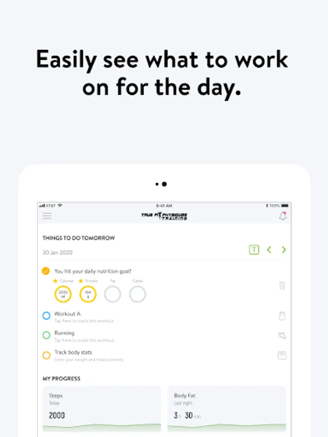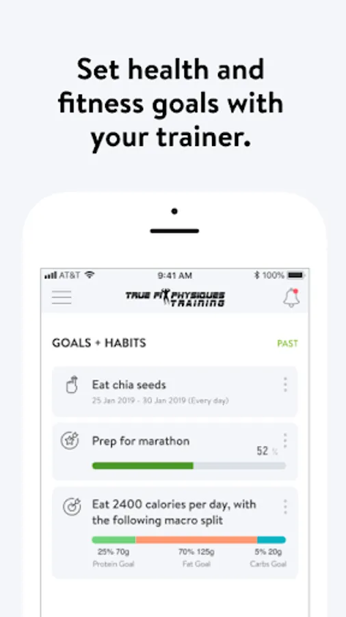 With the TrueFitPhysiques Training App, you can start tracking your workouts and meals, measuring results, and achieving your fitness goals, all with the help of your personal trainer.