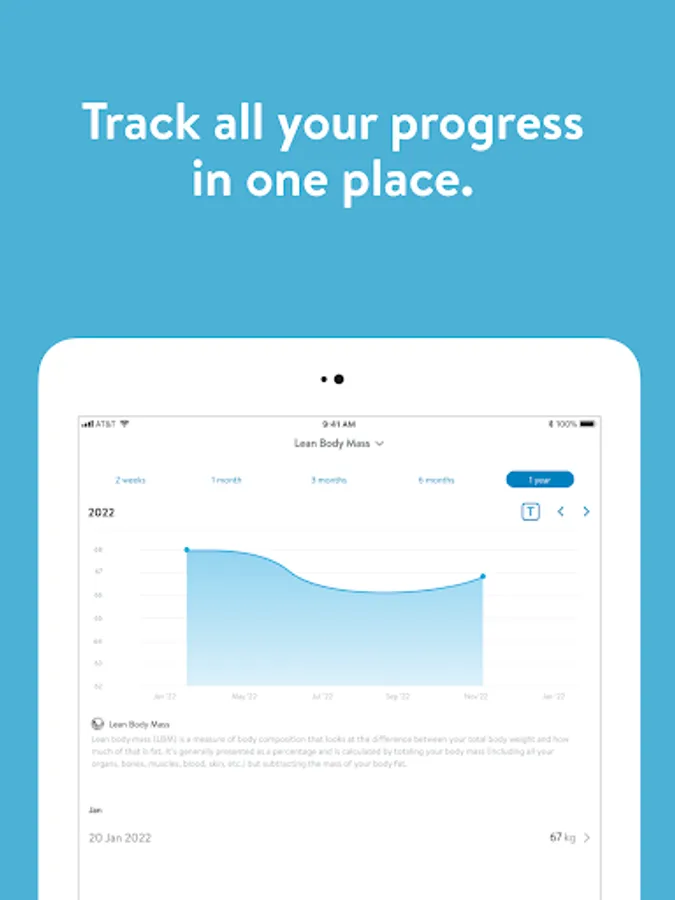 - Connect to wearable devices like Apple Watch (synced to Health app), Fitbit and Withings to sync body stats instantly