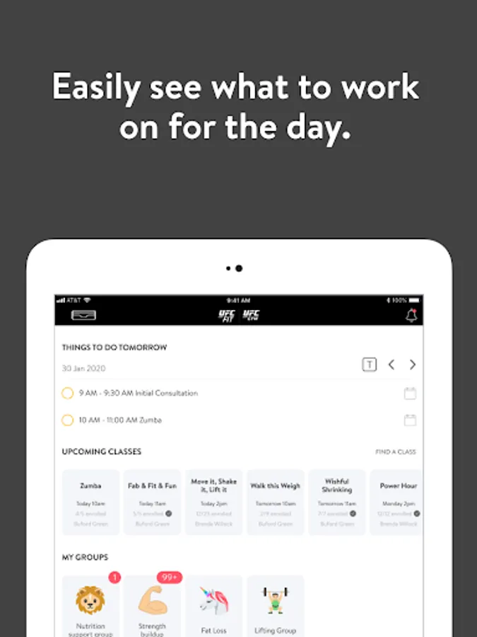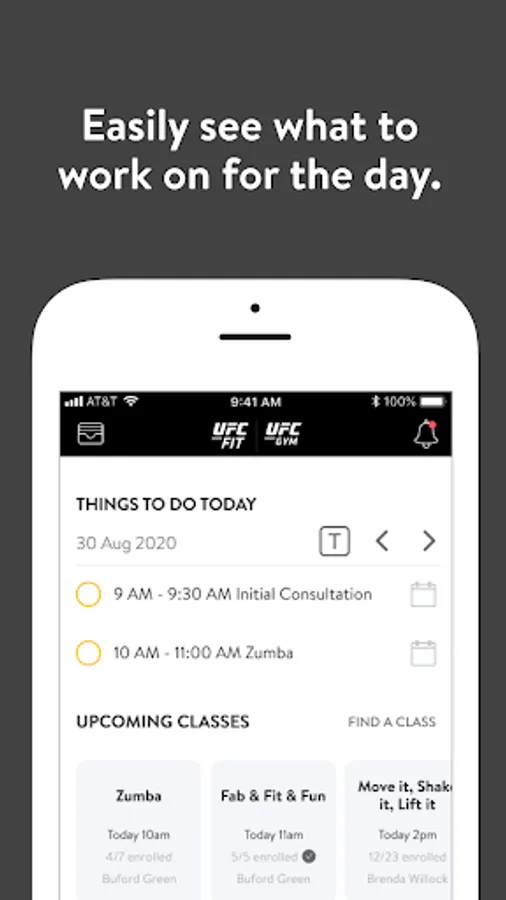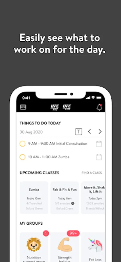 The UFC GYM+ app provides class schedules, social media platforms, fitness goals, and in-club challenges. Our app will also allow you to link many of the popular fitness tracking devices and fitness apps on the market. It uses HealthKit to save your workouts, so they can contribute to your fitness goals and challenge progress.