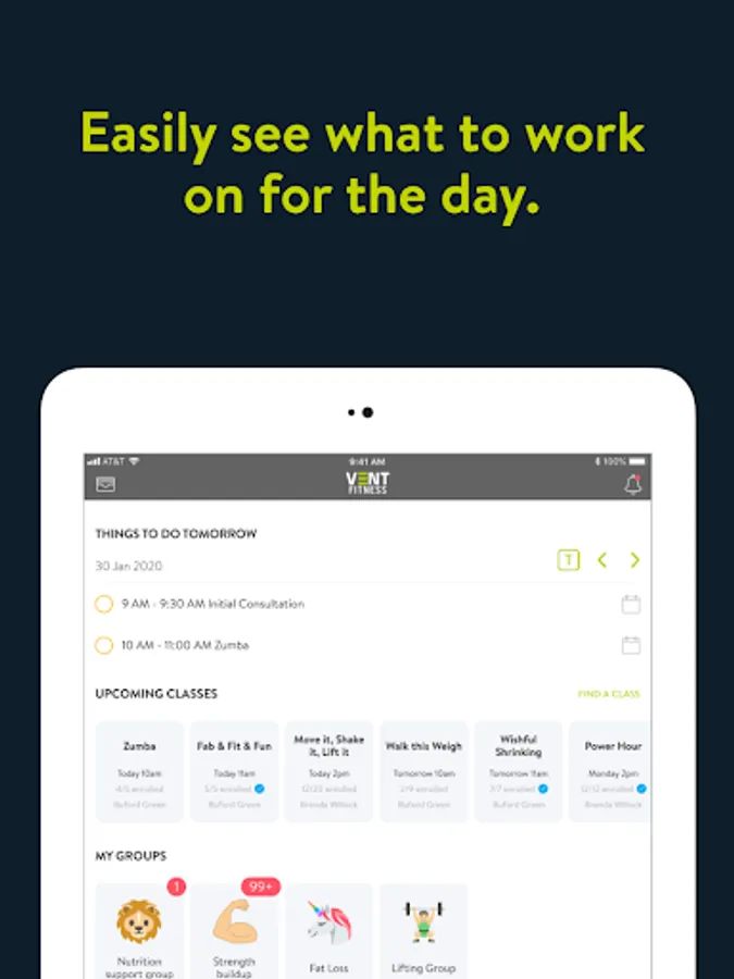 With the VENT Fitness App, you can start tracking your workouts and meals, measuring results, and achieving your fitness goals, all with the help of your personal trainer.