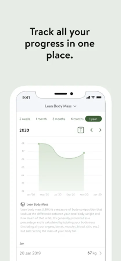 - Track body measurements and take progress photos