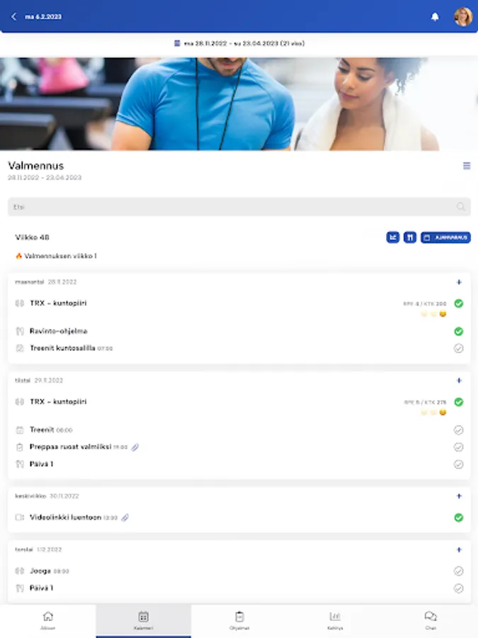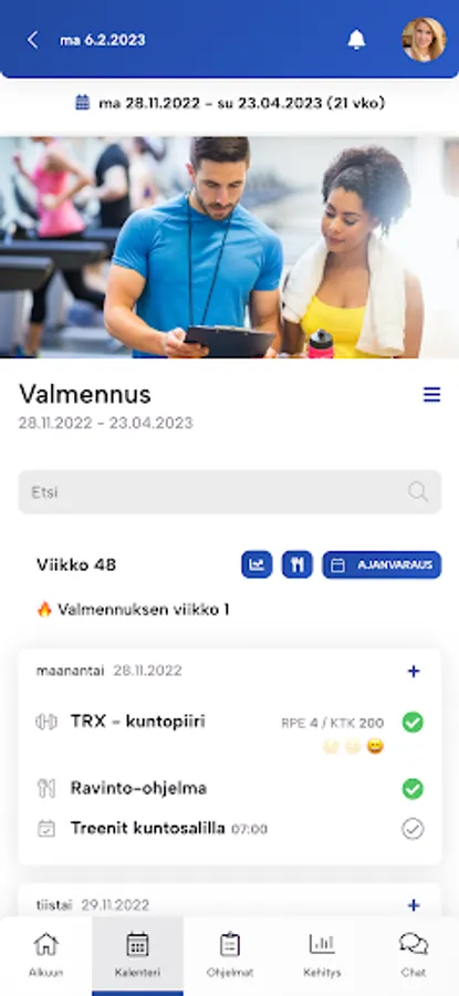 Depending on your choice, you can emphasize sweat exercise, strength development, or exercises that take care of your body. Clear programs and videos ensure effortless training. You can conveniently follow how you are evolving. For example, you can track a change in weight or an increase in your strength based on your own goals. Your motivation increases with cheerleading messages. The app is always with you on your mobile phone.