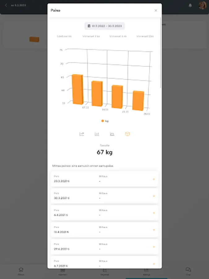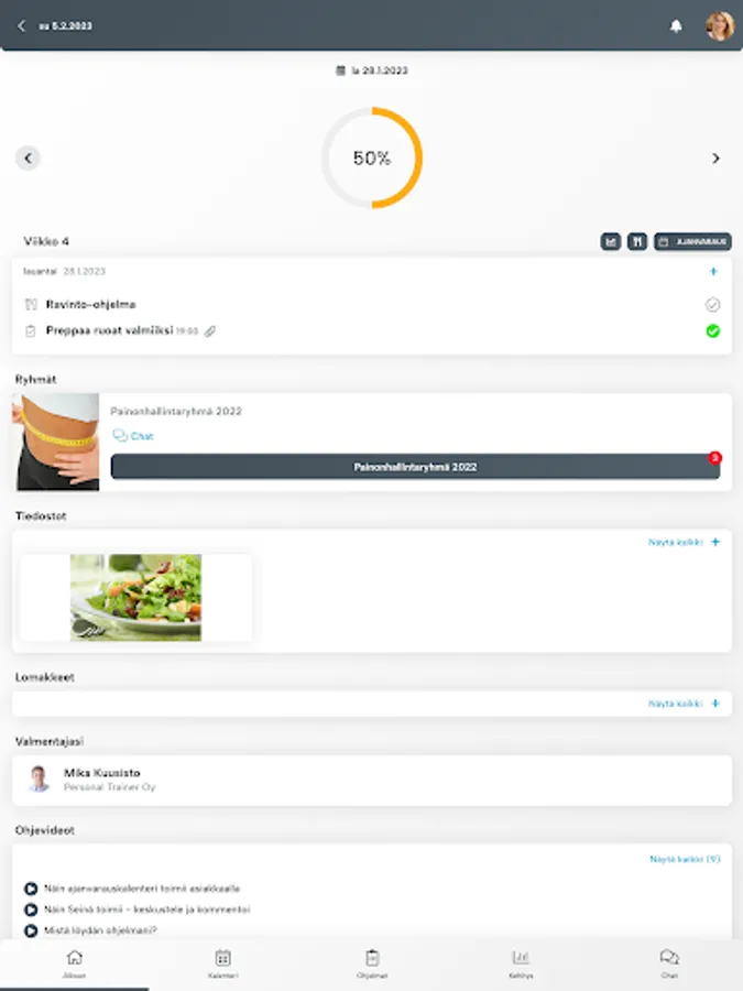 LeWELL's coaching customer application that allows the user to monitor their development in various areas together with their coach. The application also serves as a platform for e.g. training programs and allows communication between the user and the coach.