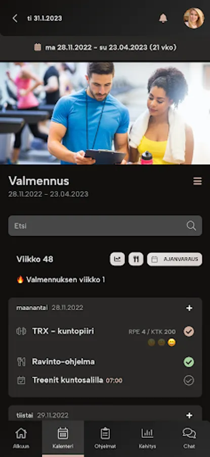 In Pauna's application you can find all popular online trainings and individual training programs. With the application, you can train effortlessly and you can easily connect with Pauna's coaches.