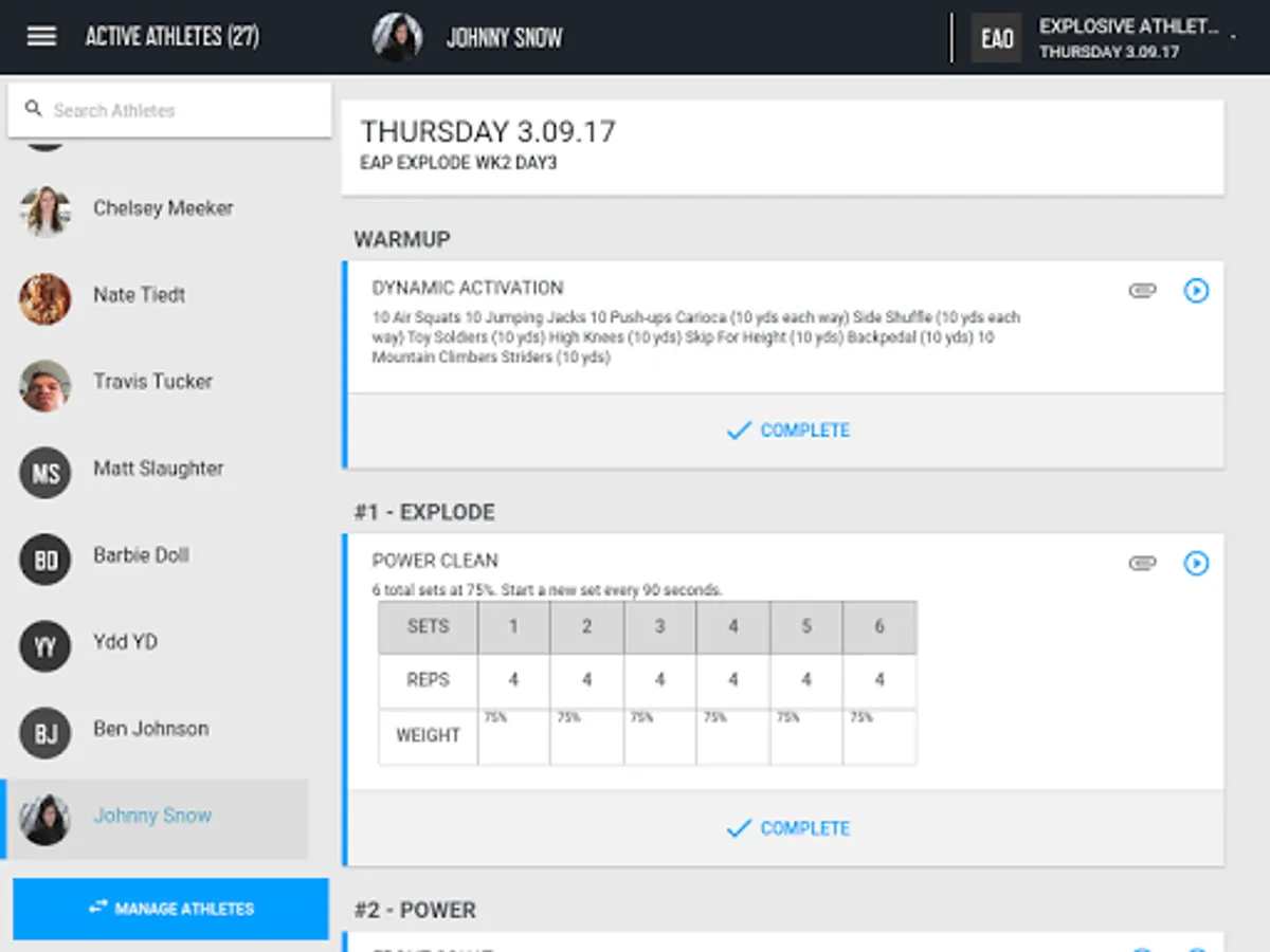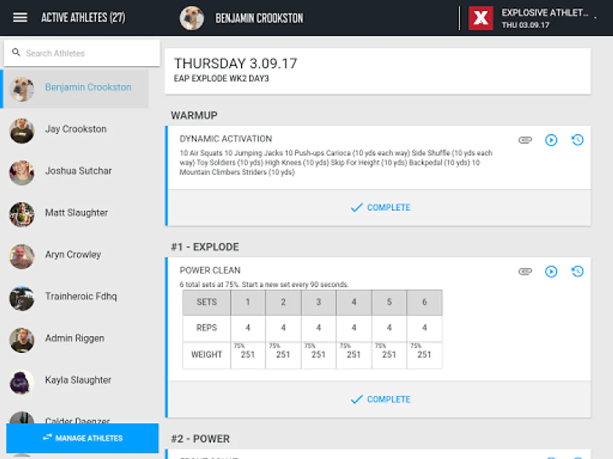 Also see our app for athletes -- the TrainHeroic mobile app -- that lets athletes log their workouts individually.
