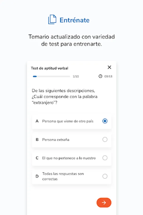 IDKÔ adapts to you, your needs and your process as an opponent depending on the phase you are in. By downloading IDKÔ you will have access, when, where and how you want, not only to practice the different psychotechnical tests but it also provides you with all the following: