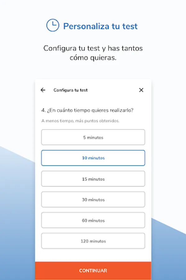 - Possibility of creating your own test (type of questions, quantity, time, etc)