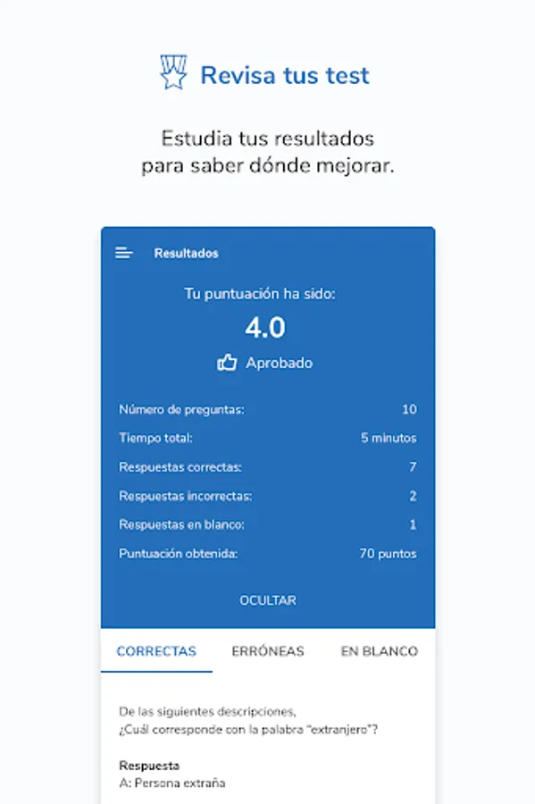 Our application is born from the experience and union of opposition experts and academics specialized in opposition processes, as well as professionals in the assessment and development of psychotechnical tests.