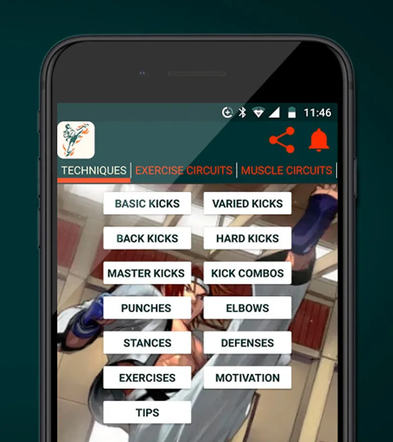 This taekwondo app and its training routines focus on the attack, speed and strength of the legs and feet, the workouts strengthen the legs, buttocks, calves and abs mainly.