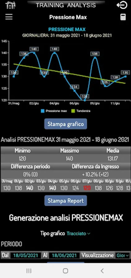 . Graphical and tabular analysis function to trace the trend of each single parameter