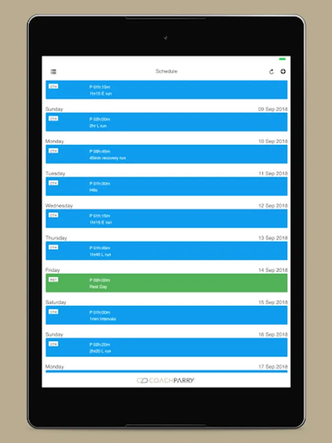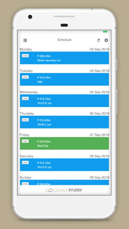 Through the Coach Parry App you are able to access ALL of our running, cycling, triathlon and strength & conditioning training programmes, starting from beginner right through to advanced levels. Simply select a programme and apply it to your Personal Training Schedule.