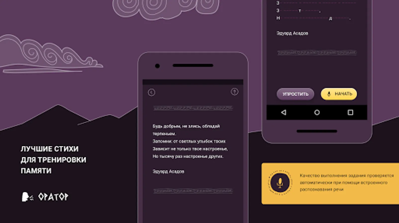 We have collected poems of famous poets on various topics: nature, love, life. Memorize new poems and very soon you will notice that each time it is easier and easier for you. The quality of the task is also checked automatically using the built-in speech recognition.