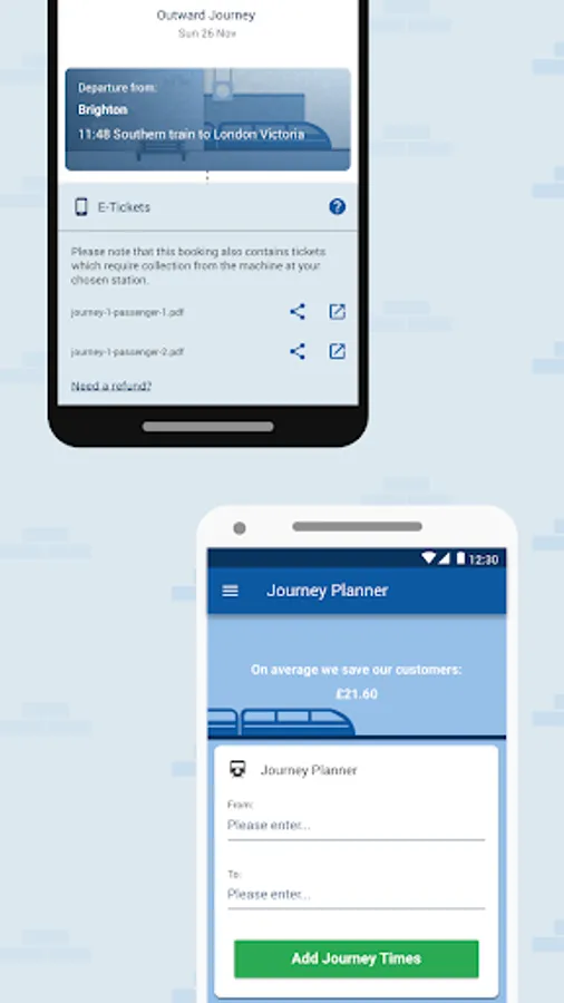 • Review - Take a look at your previous bookings and check the details of your future journeys.