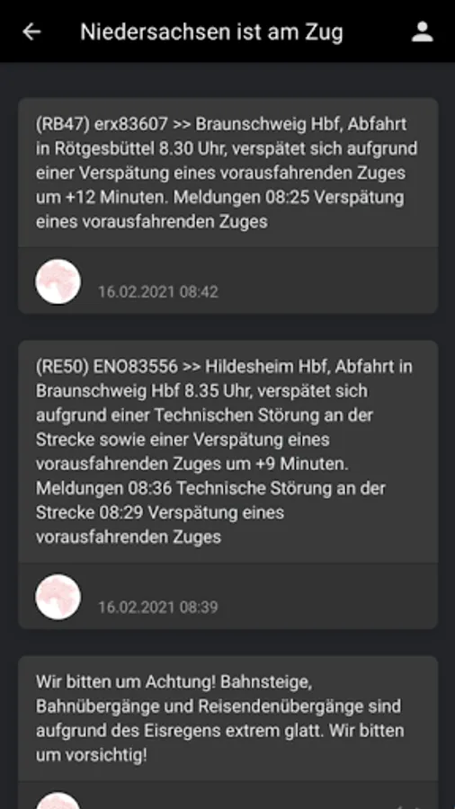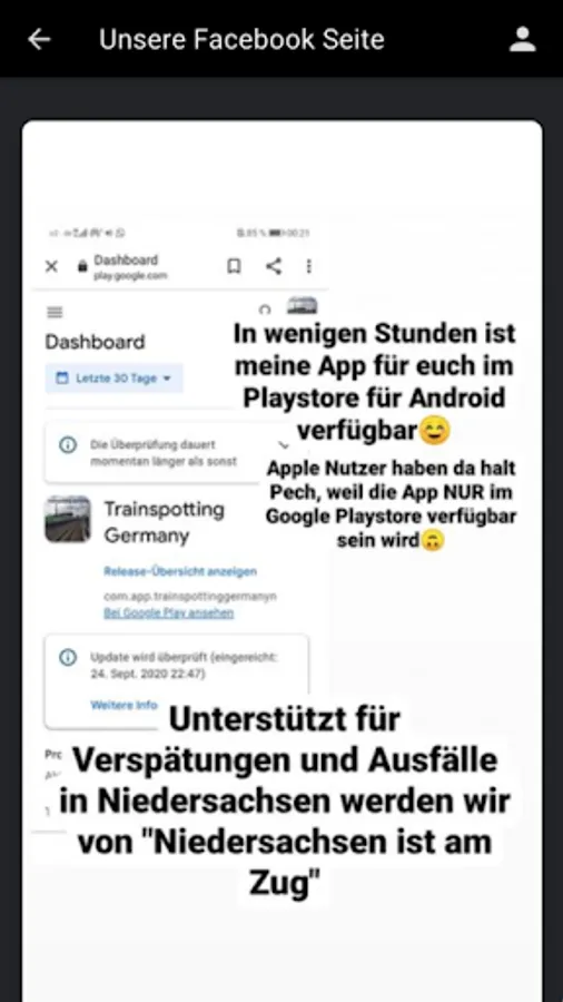 You can find all information about train cancellations and delays as well as pictures of us HERE in my app.